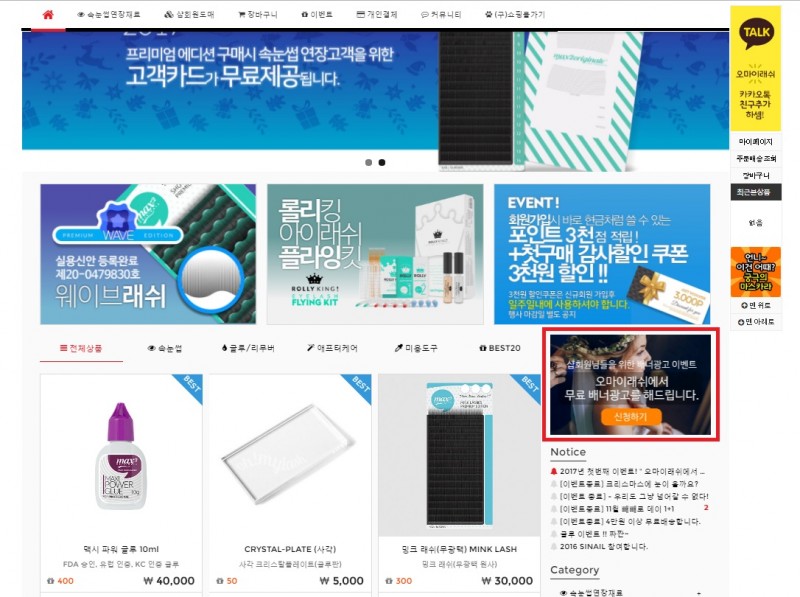 오마이래쉬 샵회원님들을 위해 웹배너를 올릴 수 있는 공간을 만들었습니다.
